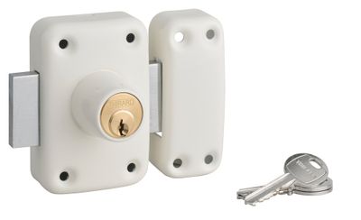 Verrou de porte Apache à cylindre double 40 mm blanc 3 clés THIRARD