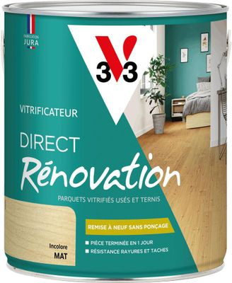 Le vitrificateur Direct Rénovation - V33 permet de rénover les parquets vitrifiés usés et ternis sans poncer, ni décaper au préalable.