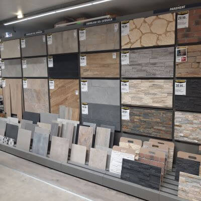 L’une des grandes nouveautés de L’Entrepôt du Bricolage de Draguignan concerne la mise en place d’espaces d’exposition pour des produits jusqu’ici présentés sur racks. Les cuisines, les placards et les salles de bains sont maintenant valorisés dans des show rooms qui permettent aux clients de se projeter. De nouvelles familles de produits font aussi leur entrée dans le magasin, comme ces grands choix de carrelages, et aussi des articles de menuiserie : portes intérieures et extérieures, portes de garage, baies vitrées… À emporter soi-même grâce à la possibilité de louer le véhicule le plus pratique ou en faisant appel au service de livraison du magasin.